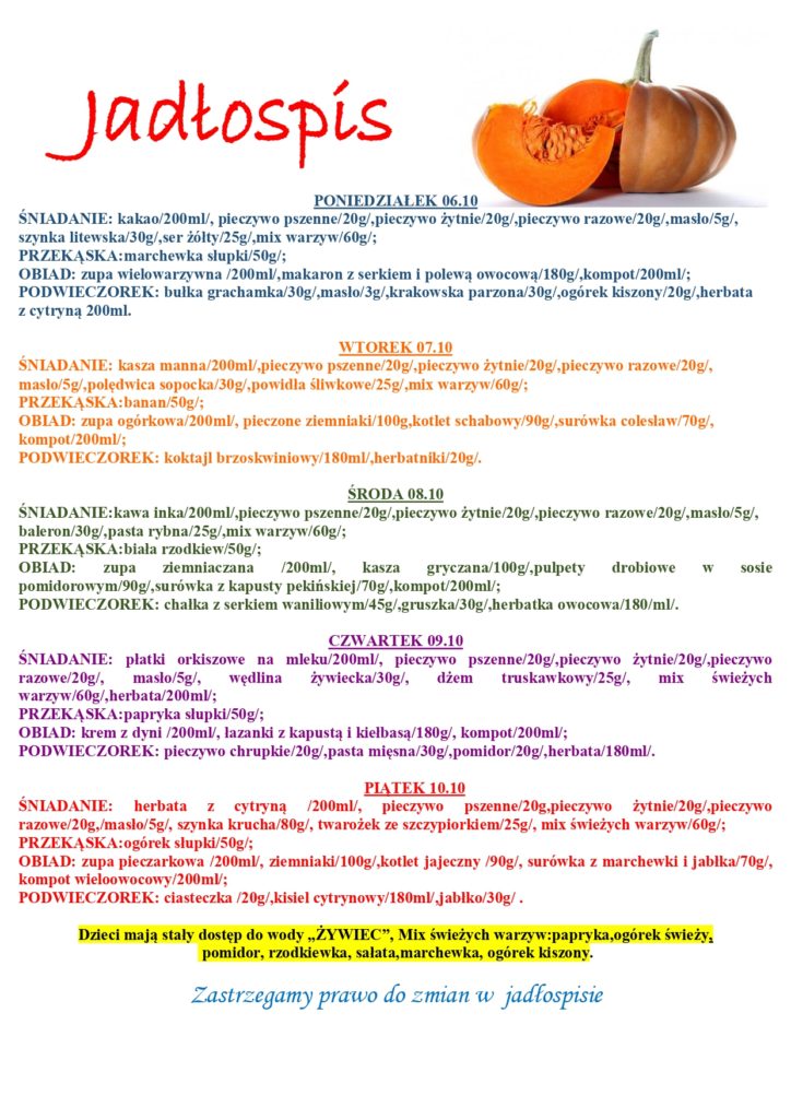INFORMACJE O OBECNOŚCI POSZCZEGÓLNYCH ALERGENÓW PODKREŚLONE BĘDĄ W CODZIENNYM JADŁOSPISIE!