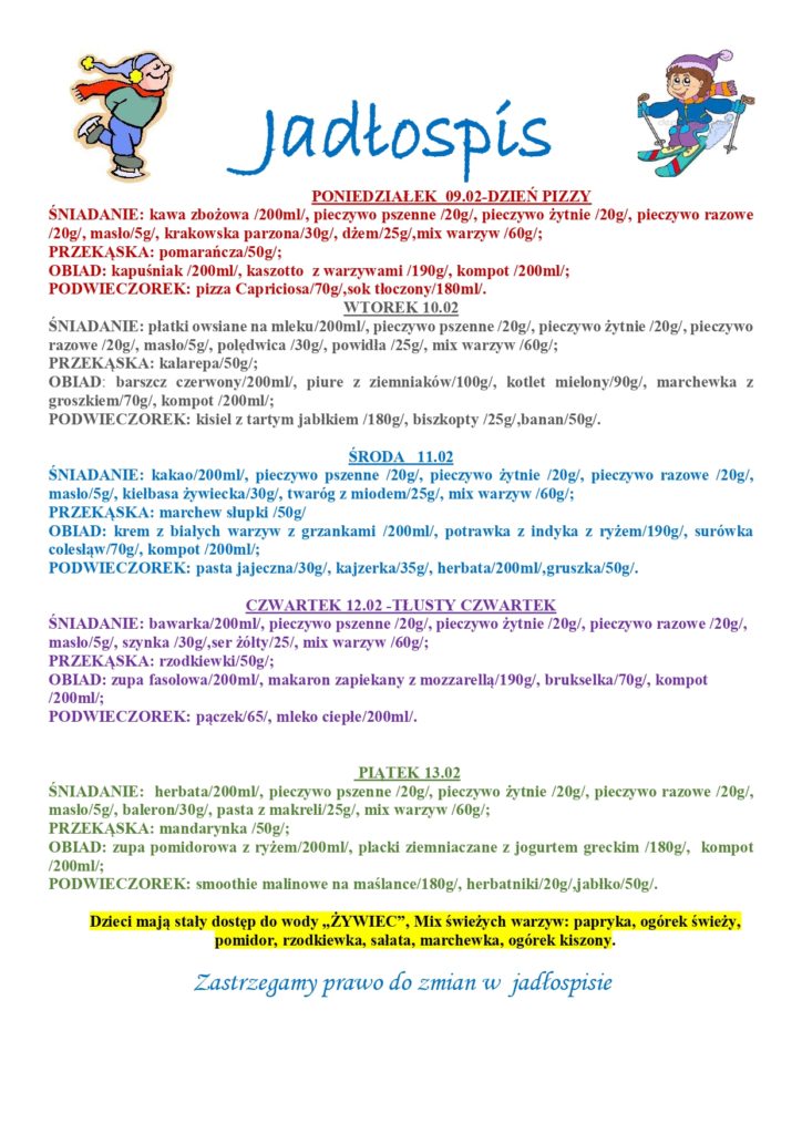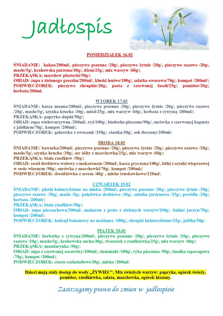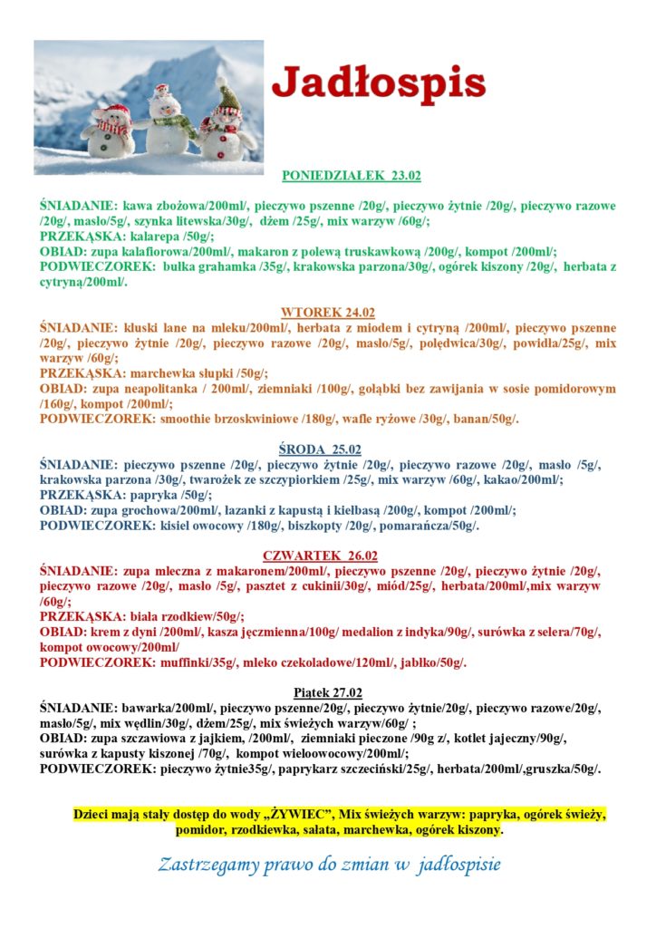 INFORMACJE O OBECNOŚCI POSZCZEGÓLNYCH ALERGENÓW PODKREŚLONE BĘDĄ W CODZIENNYM JADŁOSPISIE!
